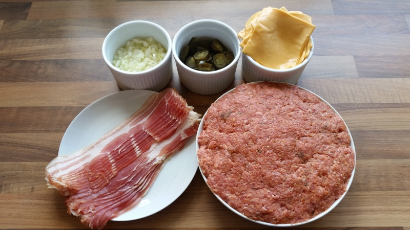 - Das Hackfleisch mit der BBQ-Gewürzmischung verkneten. Je länger geknetet wird, desto stabiler wird die Bombe.