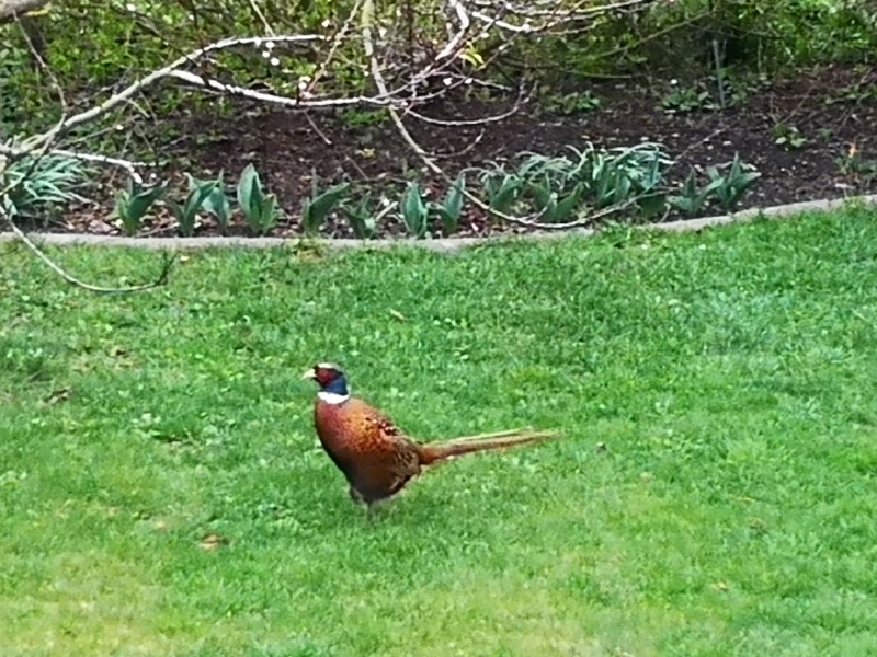 Gummiadler mit Backpflaumenfüllung, Süsskartoffelpommes und Erbsenpüree.