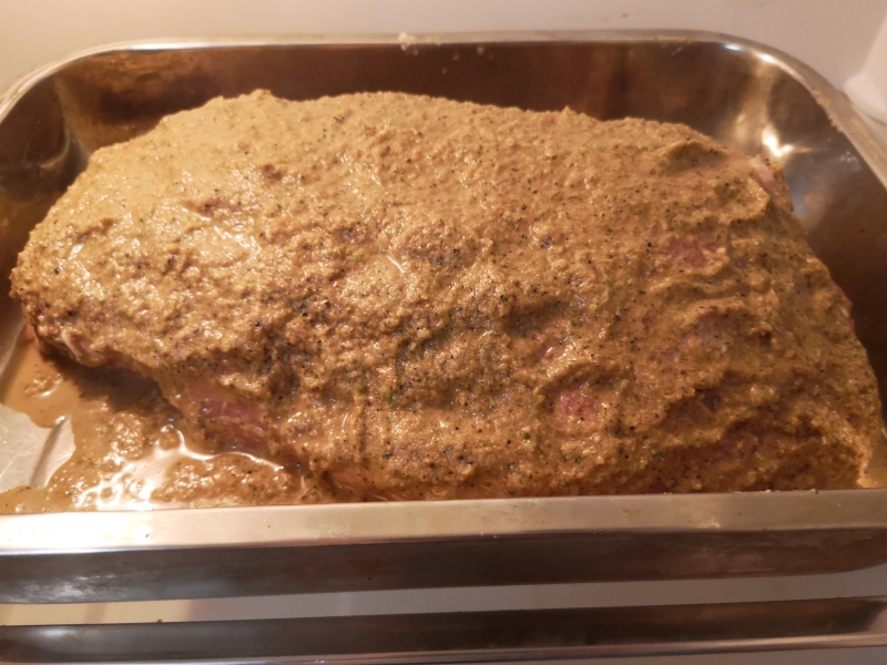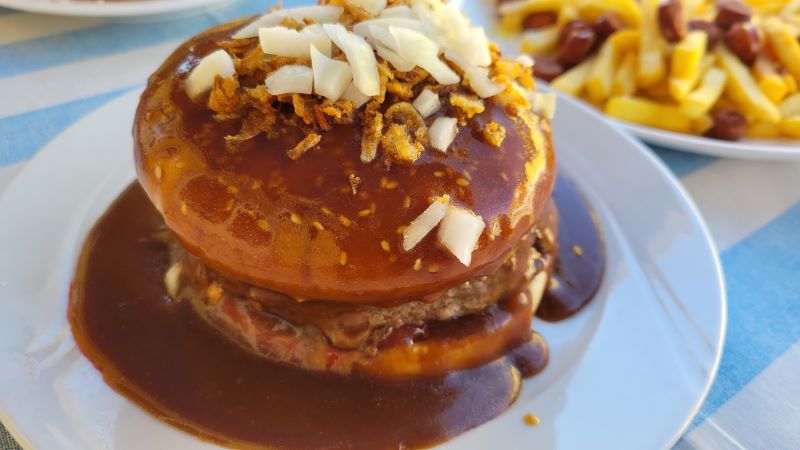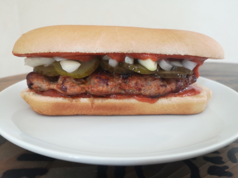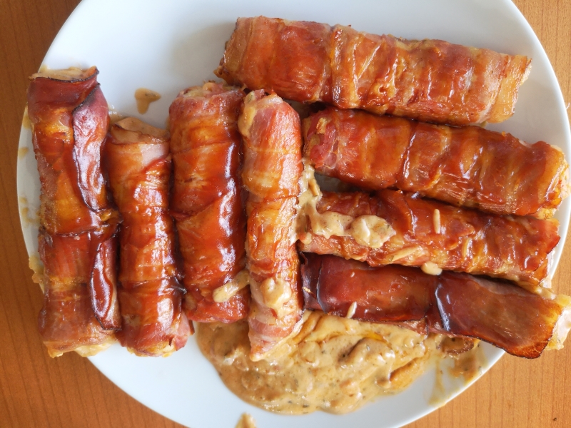 Moink-Balls auf Schweinenacken auf Süsskartoffeln. Läuft.