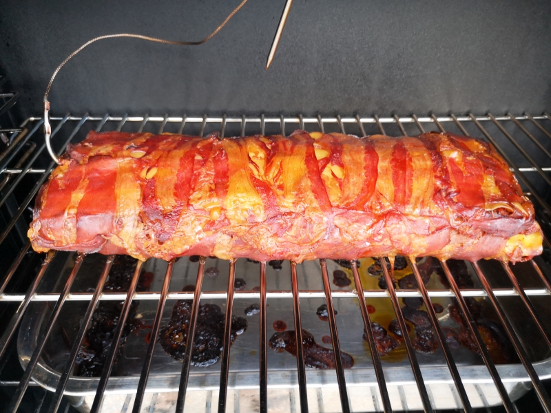- 2 Stunden bei 110 °C in den Smoker mit Buchenholzmehl oder Spänen smoken.