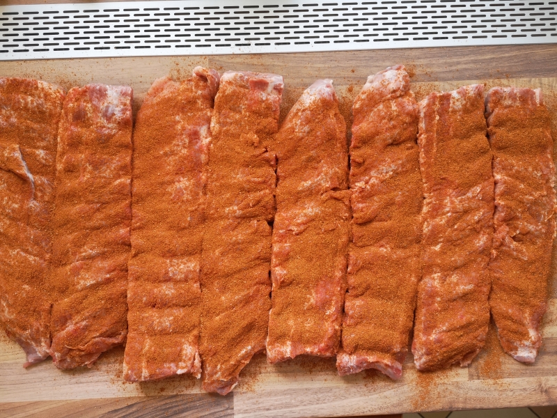 - Fleischseite mit reichlich BBQ-Gewürzmischung bestreuen.