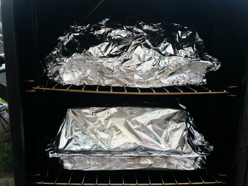 - Nach den 2 Stunden die Spareribs auspacken und auf den Rost des Smokers stellen.
