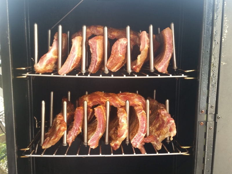 - Die Spareribs in den Smoker stellen und 3 Stunden bei ca. 110 °C räuchern.