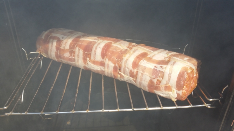 16. Im Smoker bei 100 °C ca. 2 1/2 Stunden bis Kerntemperatur ca. 78 °C smoken.