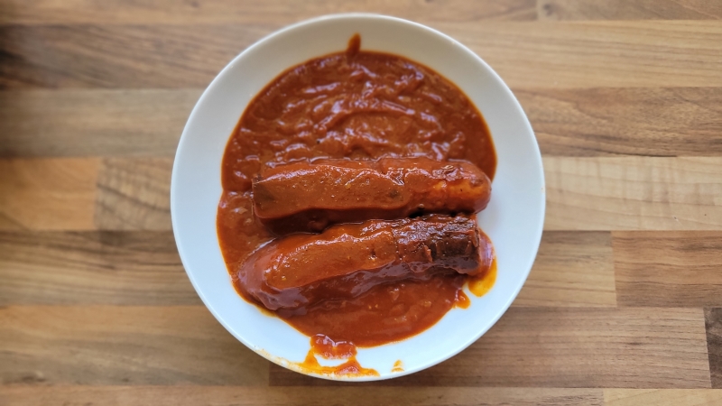 1 Currywurst mit Sauce vom Vortag