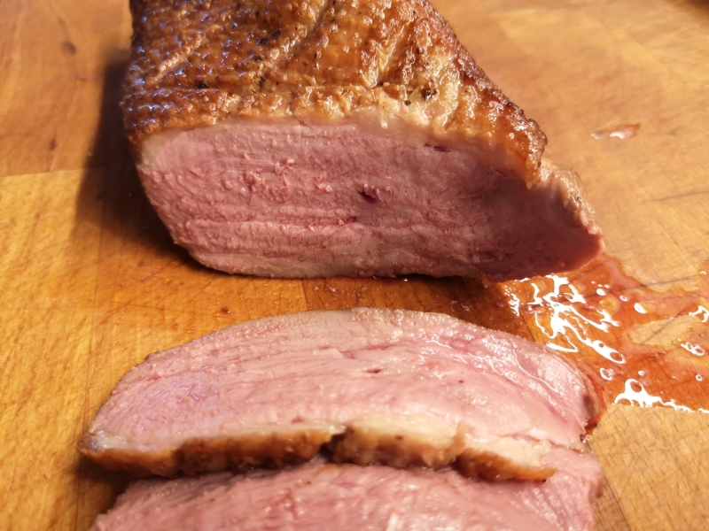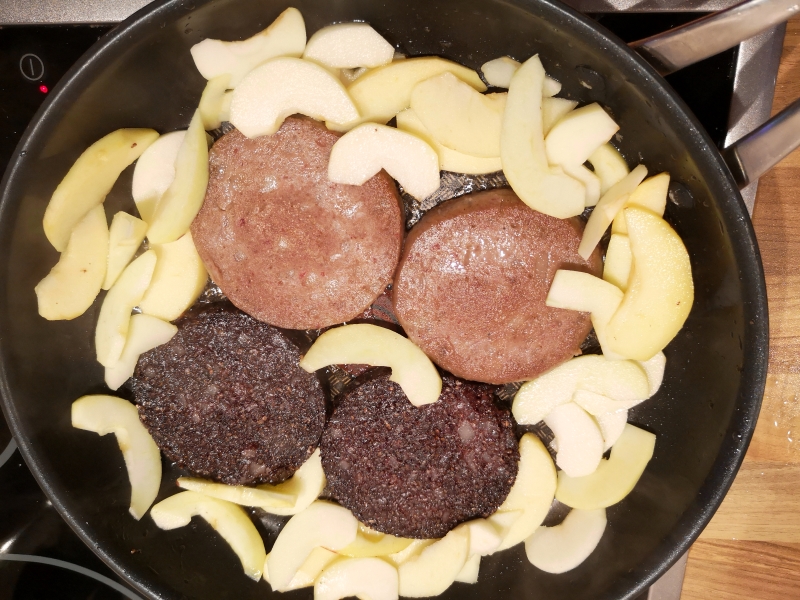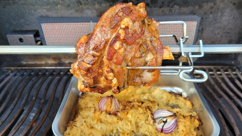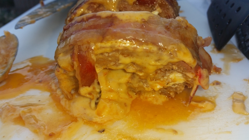 Moink-Balls auf Schweinenacken auf Süsskartoffeln. Läuft.